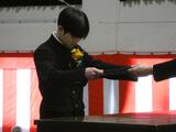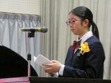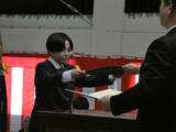 2/6(金)2年生立志式を実施しました。生徒一人ひとりの「自覚」と「立志」を新たにすることを目的とし、自分の思いを込めた漢字1文字を筆でしたため、壇上で決意を語りました。式に際し、福田富一県知事からのメッセージと大田原市更生保護女性会の皆様からチューリップの造花をいただきました。