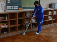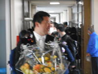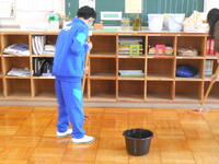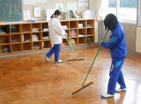 現学級で仲間と過ごすのも残すところ2日となりました。帰りの会終了後、次の学年が気持ちよく使えるようにとの思いを込め、1・2年生がそれぞれの教室の床にワックスを塗り、ピカピカにしていました。