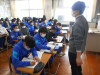 本日をもって、1・2年生それぞれの全教育課程が修了しました。式の後、学年代表生徒が意見発表を行い、1年間の振り返りと、新年度に向けての強い決意を述べました。