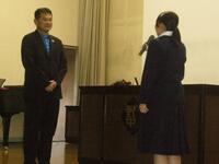藤田様からの「引き続き頑張ってほしい」とのお言葉に、生徒会長の中山さんは、「頑張ります」と力強く答えていました。