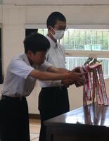 生徒集会に先立ち、那須地区総合体育大会の表彰も行いました。