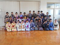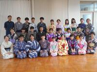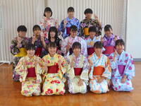 地域の講師をお招きし、3年生と2年生が着物着付け教室を行いました。