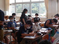 薄葉小と石上小の6年生が、本校で英語の合同授業を行いました。
