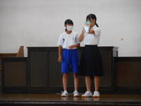 生徒集会が行われました。生徒会長の村上さんが各学年に対して中間テストの振り返りや今後のテストへの心構えなどについて話し、続いて生活美化委員長の小髙さんから全校生徒に学校生活における注意事項などを話しました。