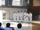 ベルマーク収集活動を行っている福祉委員の生徒が、「ベルマークはこんな物にもついてるよ!」と、寸劇を交えて全校生徒に呼びかけました。生徒会長は、意義ある夏休みにするべく、学年の状況に応じて語りかけていました。
