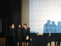 新入生オリエンテーションが開かれました。行事や委員会活動の紹介等を、寸劇や映像を交えて生徒会役員が説明しました。生徒会から、今期のスローガン「トライフォース改革」について詳しい説明がありました。また、各部の部長が部活動を紹介しました。