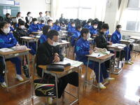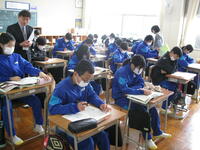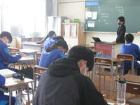 4/15(火)3年生が、理科の「全国学力学習状況調査」をCBT(Computer Based Testingの略)方式で受けました。生徒は、調査前に一度、コンピュータによるテストを体験実施していましたので、落ち着いて解答していました。いよいよ、コンピュータを使用したテストの到来です。