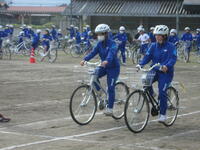 4/22(火)大田原市交通指導員の益子様を講師としてお迎えし、交通安全教室を開催しました。実技の時間では、「安全確認の方法」「ハンドル操作」「ブレーキ操作」について学び、学んだことを実際にやって確認しました。また、大田原市輪業組合の方が「自転車点検」をしてくださり、「整備不良」の箇所がある場合は、黄色の「自転車整備カード」が貼られました。各家庭で御確認ください。整備が必要なものは早急に御対応ください。