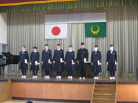 前期生徒会役員を任命しました。野崎真由さん(会長)、中村紬さん(副会長)、和氣羽音さん(副会長)、加藤碧さん(書記)、橋本芽依さん(書記)、南澤翔さん(会計)、印南姫奈さん(会計)、須田優月さん(庶務)「野中トライフォース改革」をスローガンに、活気のある学校を目指すことを宣言しました。改革を推進する頼もしい8名です。