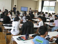 7/17(木)2年生対象に、情報モラル教室を開催しました。SNSの特性について改めて考えたり、事例から学んだりと、夏休み中の生活にも生かせる内容でした。