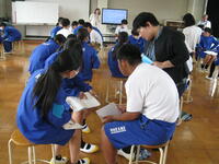 7/7(月)2年生を対象としてキャリア講話「未来講座」を実施しました。講師は、おおぞら高等学校の教職員の方々6名(宇都宮校を中心に、仙台校や高崎校の方も)にお願いしました。「将来の夢や目標の見つけ方」と題し、「みらいノート」を利用したグループワークで、生徒は、自分の好きなことや、なぜ好きになったのか等を改めて考え、自分について見つめ直すきっかけをいただきました。