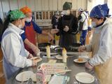 3年生 家庭科調理実習(幼児のおやつ) 投稿: 担当 (12/23) クリスマスが間近に迫った12/23(火)、3年生家庭科で「幼児のおやつ」づくりを学習しました。今回は、簡単にできる「クレープ」づくりを行い、トッピングなども楽しみました。