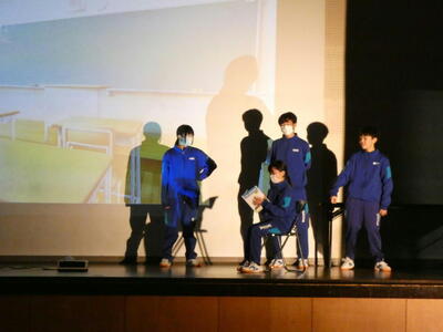 生徒会執行部の生徒たちは、3月から計画を始め、春休みなど時間がとれるときに自主的に活動してきました。シナリオをはじめ、背景の映像や音楽の挿入などすべて、執行部の生徒だけで行いました。